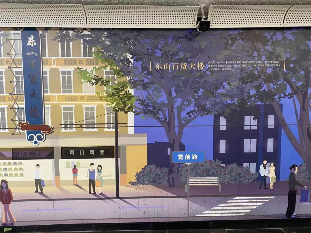 “时光墙”以灯光+平面展览、插画绘制+老照片等形式,将一幅幅精美插画呈现在大众面前。通过新河浦历史文化街区、广九时空列车、东山印象历史老照片等不同展示区域,再现旧时的生活场景和故事,展示周边片区的历史文化和人文风情。